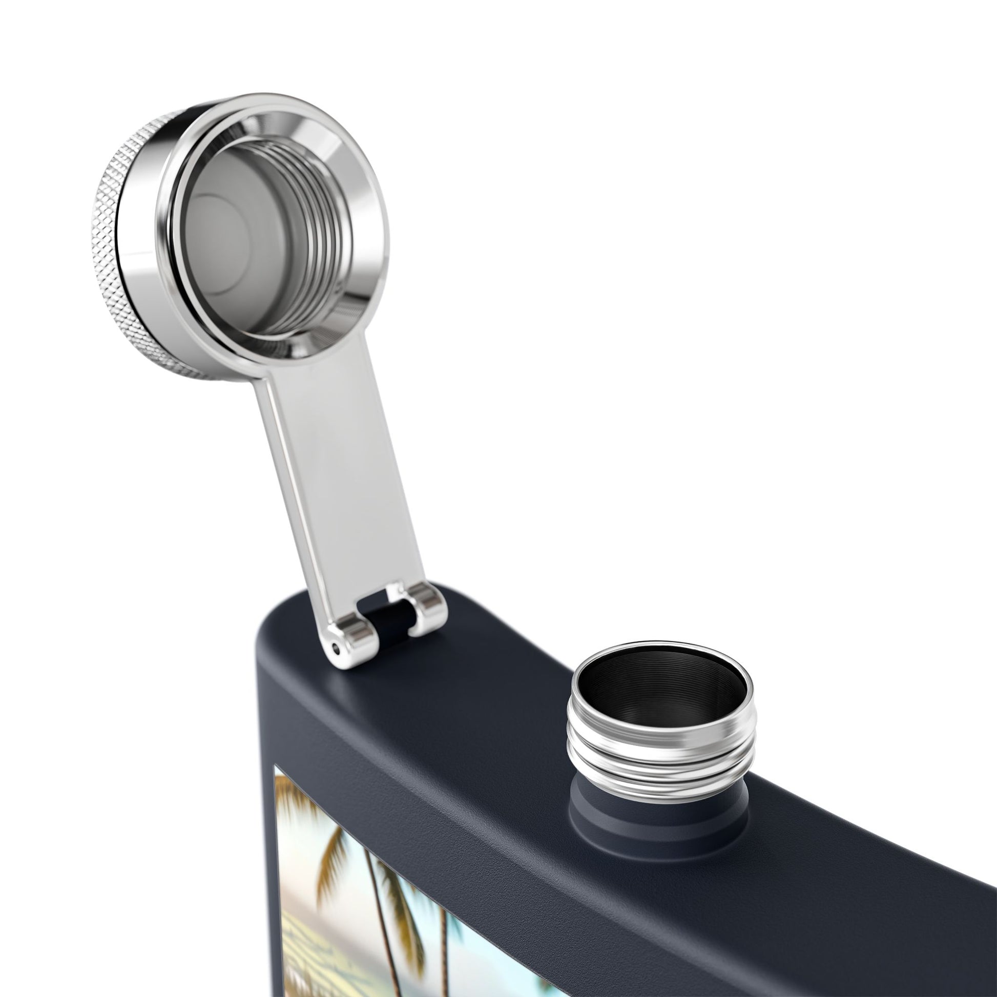 6oz Stainless Steel Flask — Tropical Beach Walk Design